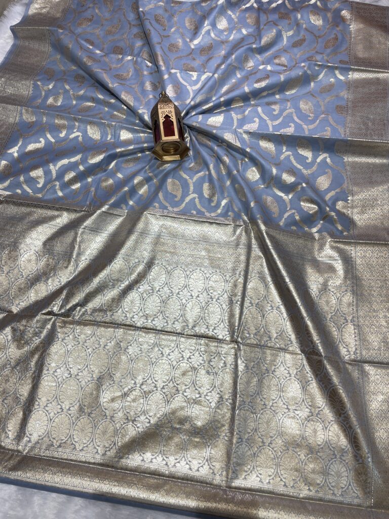 Pure Tissue Silk Saree in Olive Gold Iridescent