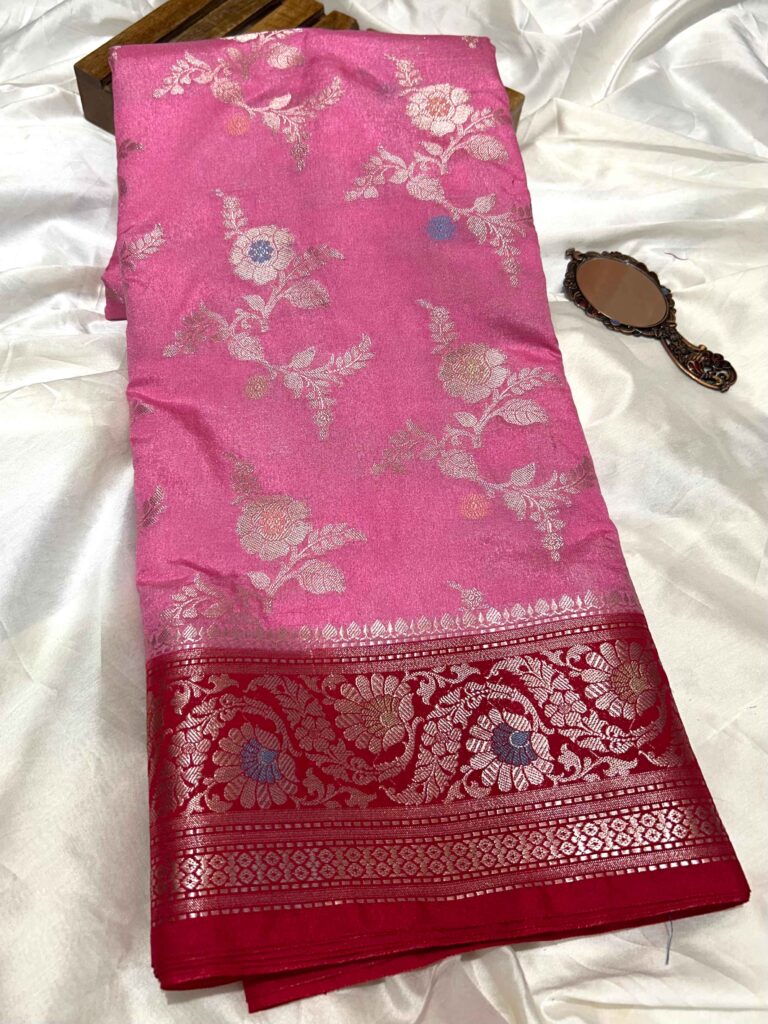 Pure Cotton Linen Dual Shade Silk Saree in Pink and Red