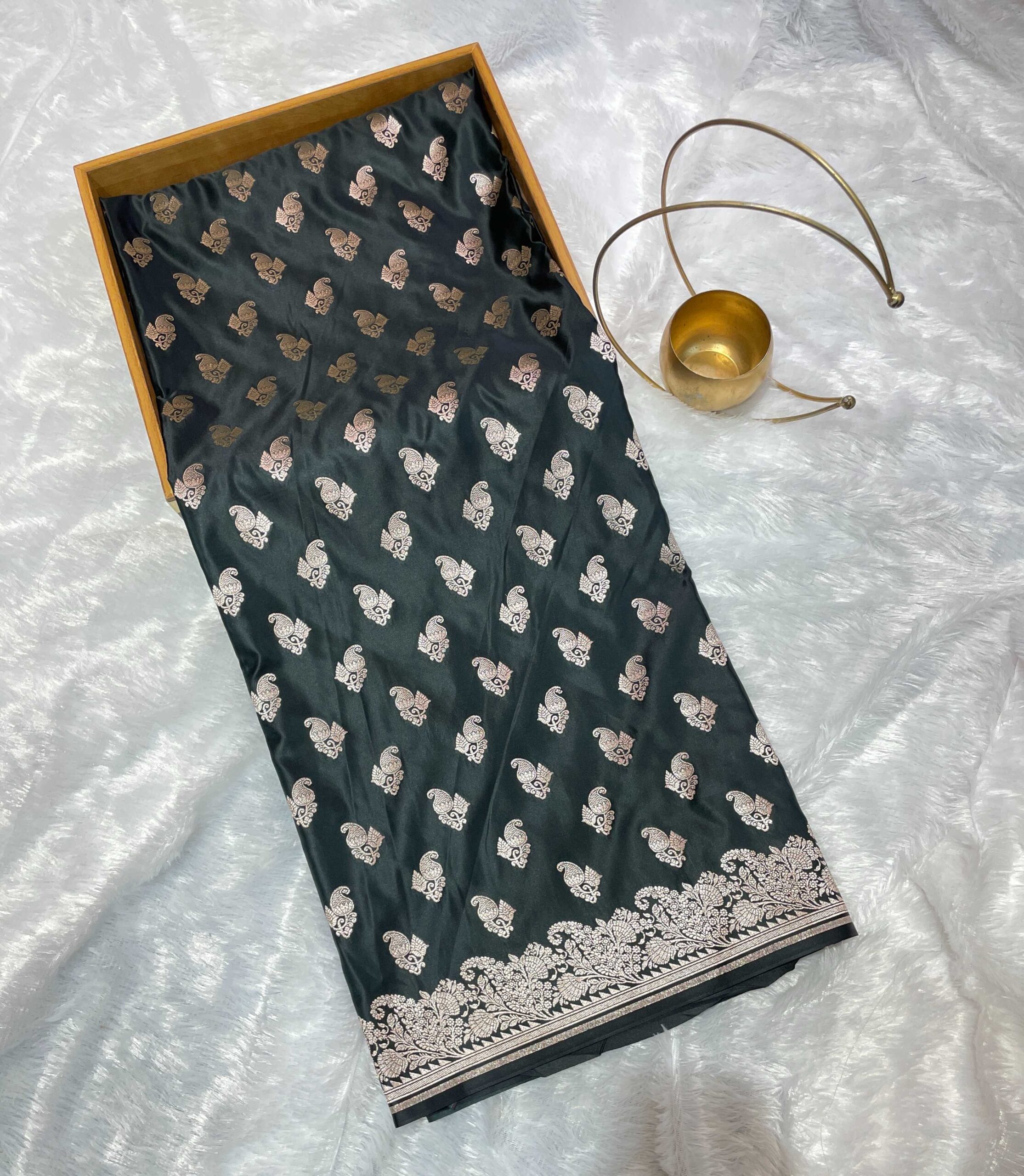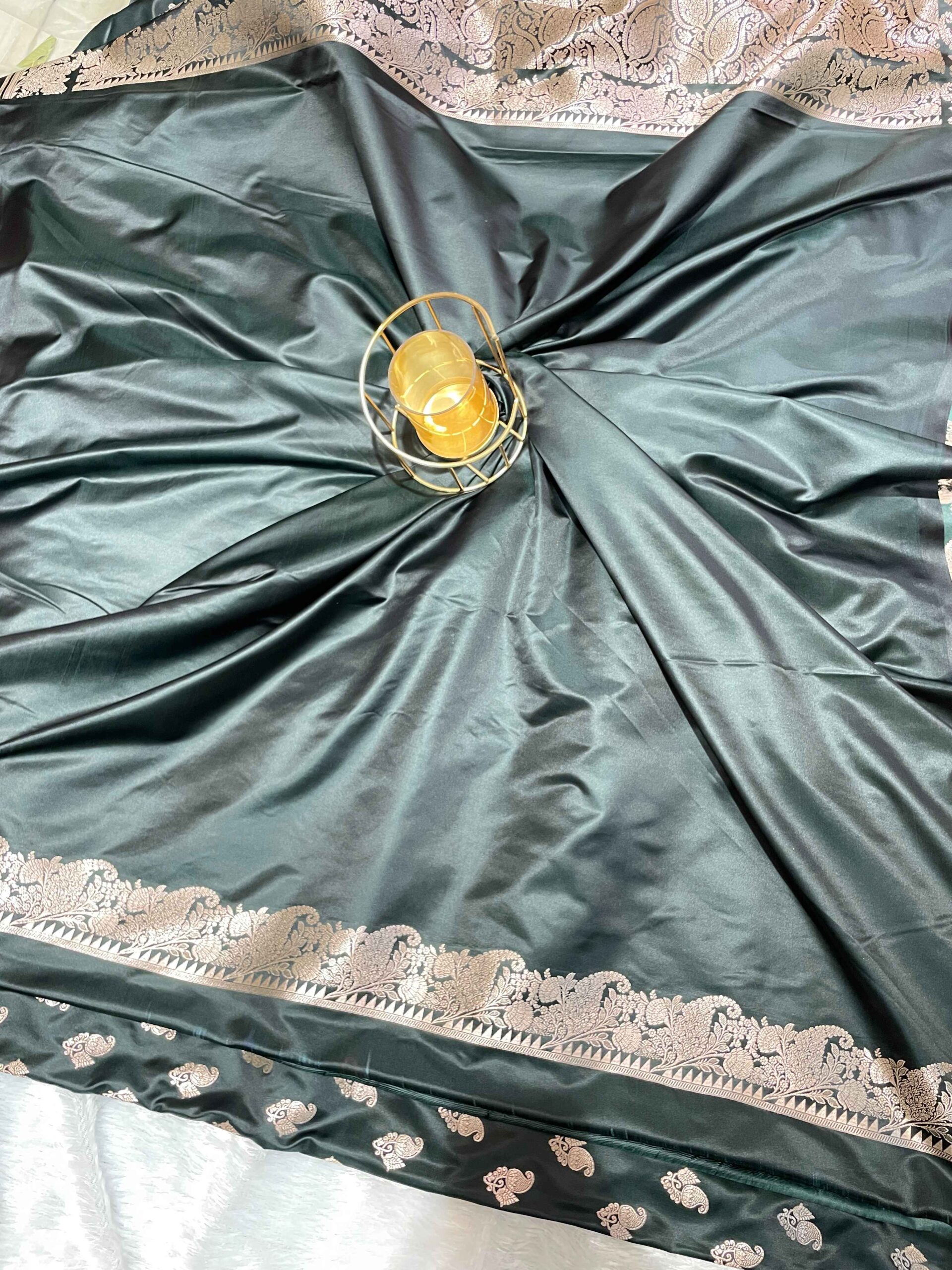 Be the first to review “Dark Green Pure Katan Mashru Silk Saree with Silver Zari Work” Cancel reply