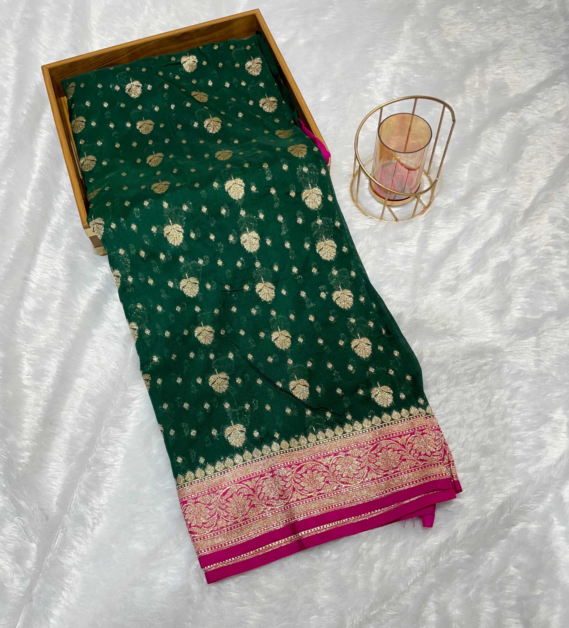 Be the first to review “Pure Georgette Silk Saree in Emerald Green with Magenta Border”