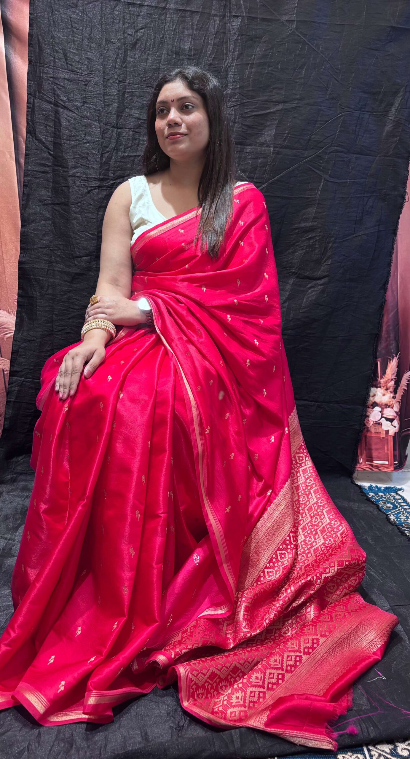 | COLOR | Vibrant Rani Pink with Rich Golden Zari |