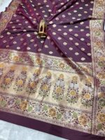 Give your wardrobe a touch of luxury with our Pure Meena Kanjivaram Silk Saree in classic Purple. The rich silk has a beautiful shine, and the delicate meena work adds a hint of colour without taking away the elegance. The saree feels soft, drapes beautifully, and instantly gives you a graceful, premium look. Perfect for weddings, festive functions, or any occasion where you want to stand out with timeless style.