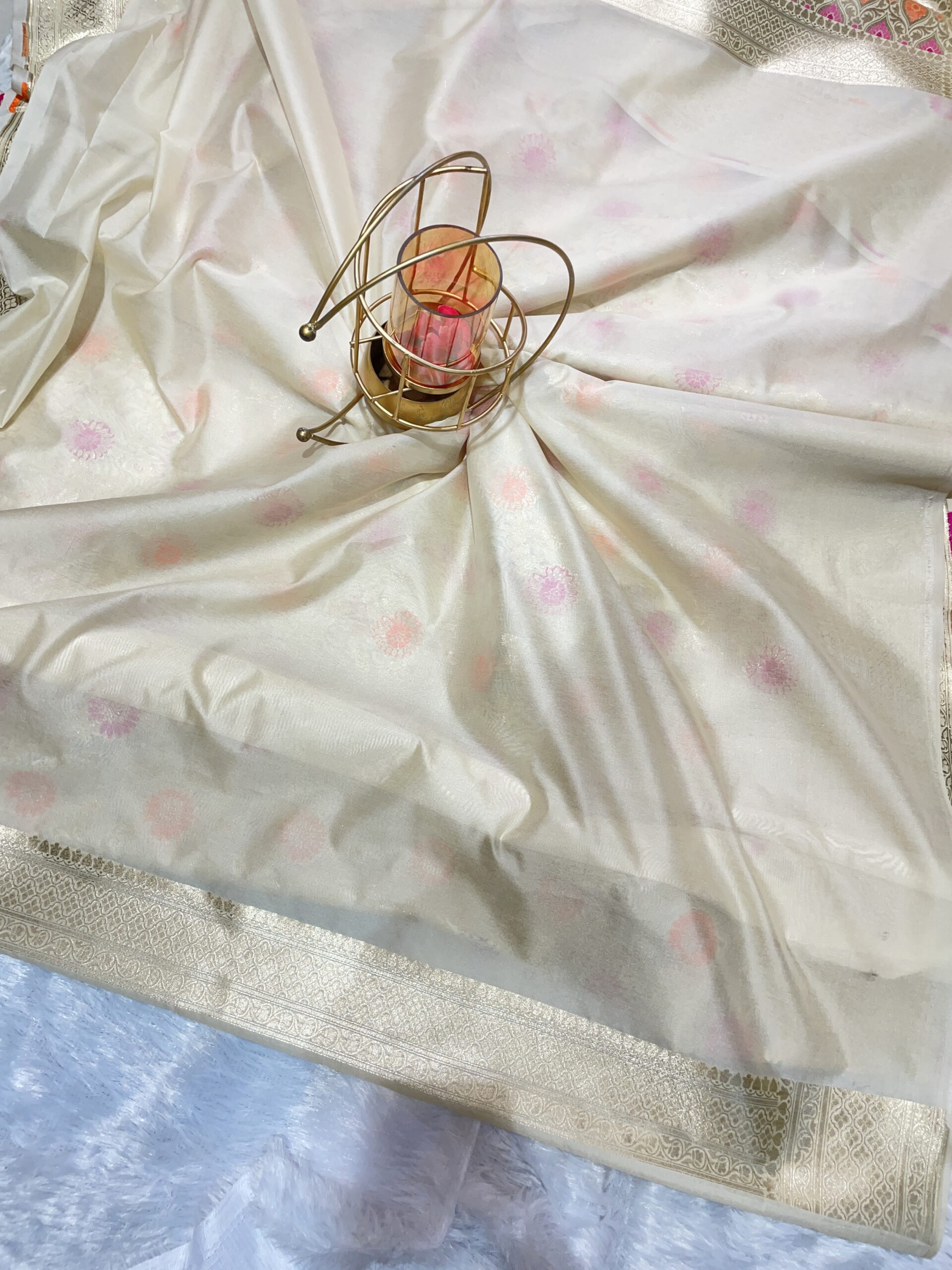 Pure Tilfi Meenakari Silk Saree (Cream)