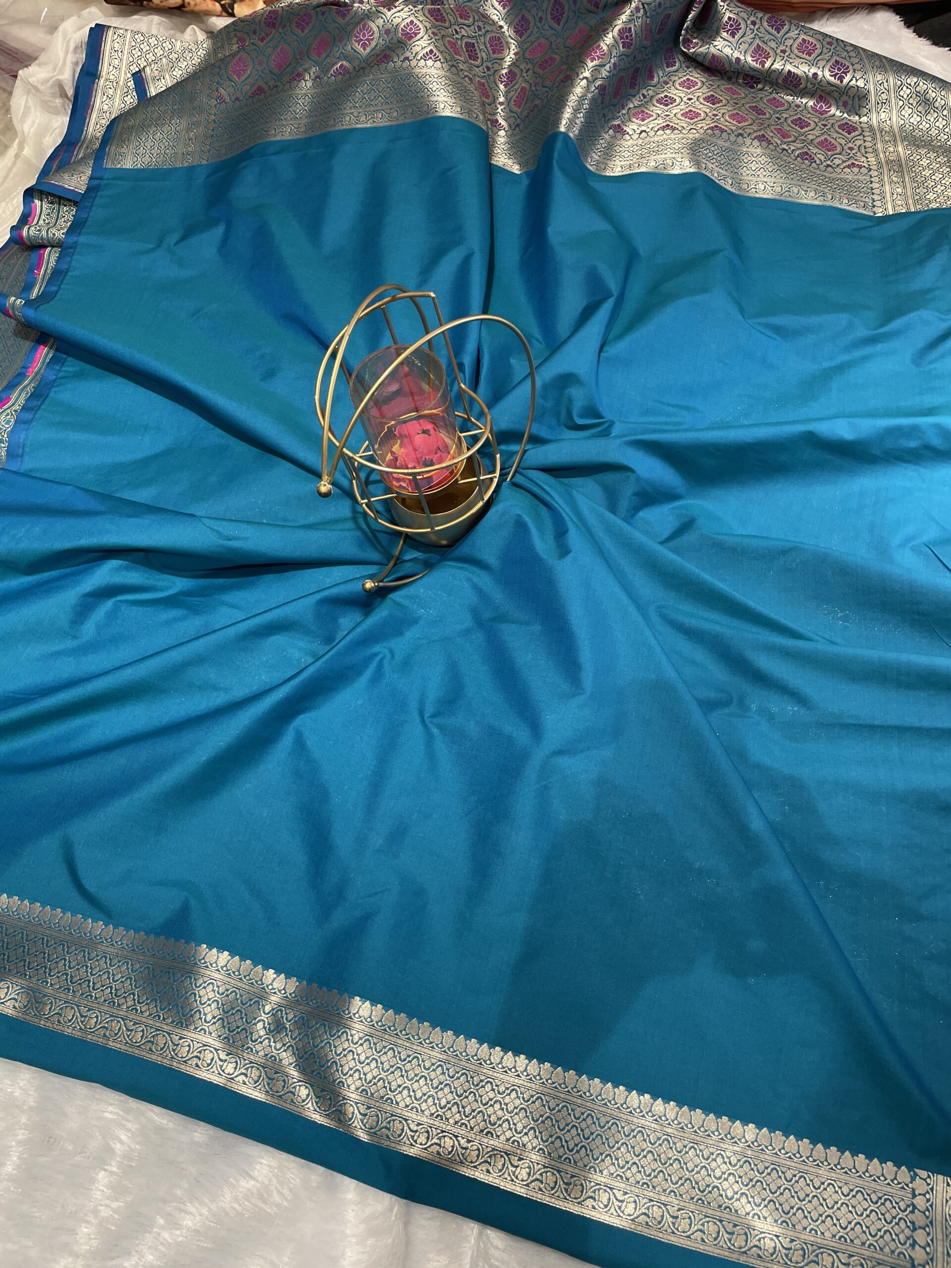 Pure Tilfi Meenakari Silk Saree (Firozi)