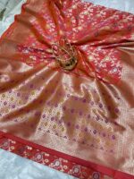 Add a rich and festive touch to your wardrobe with this Pure Tilfi Meenakari Silk Saree in red. The silk feels smooth, drapes well, and has a soft shine that looks elegant. The tilfi and meenakari work brings a beautiful traditional charm without making the saree feel heavy. Perfect for weddings, pujas, or any special occasion where you want a graceful and standout look.