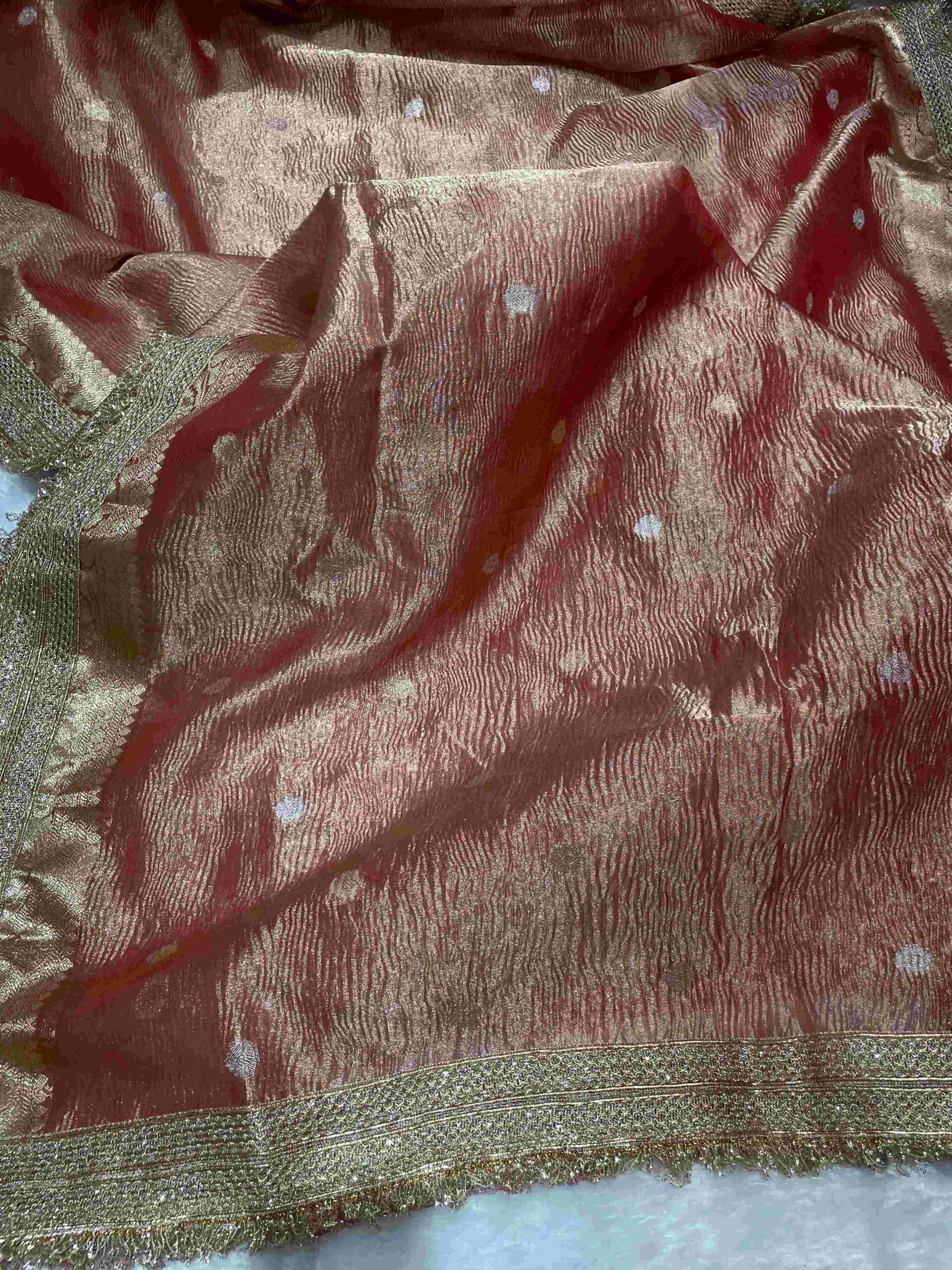 Pure Tissue Silk Saree in Maroon Rose Gold