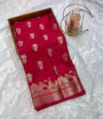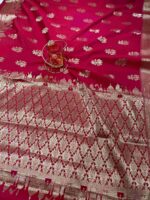 Be the first to review “Rani Pink Pure Banarasi Ghat Silk Cotton Saree with Golden Buti” Cancel reply