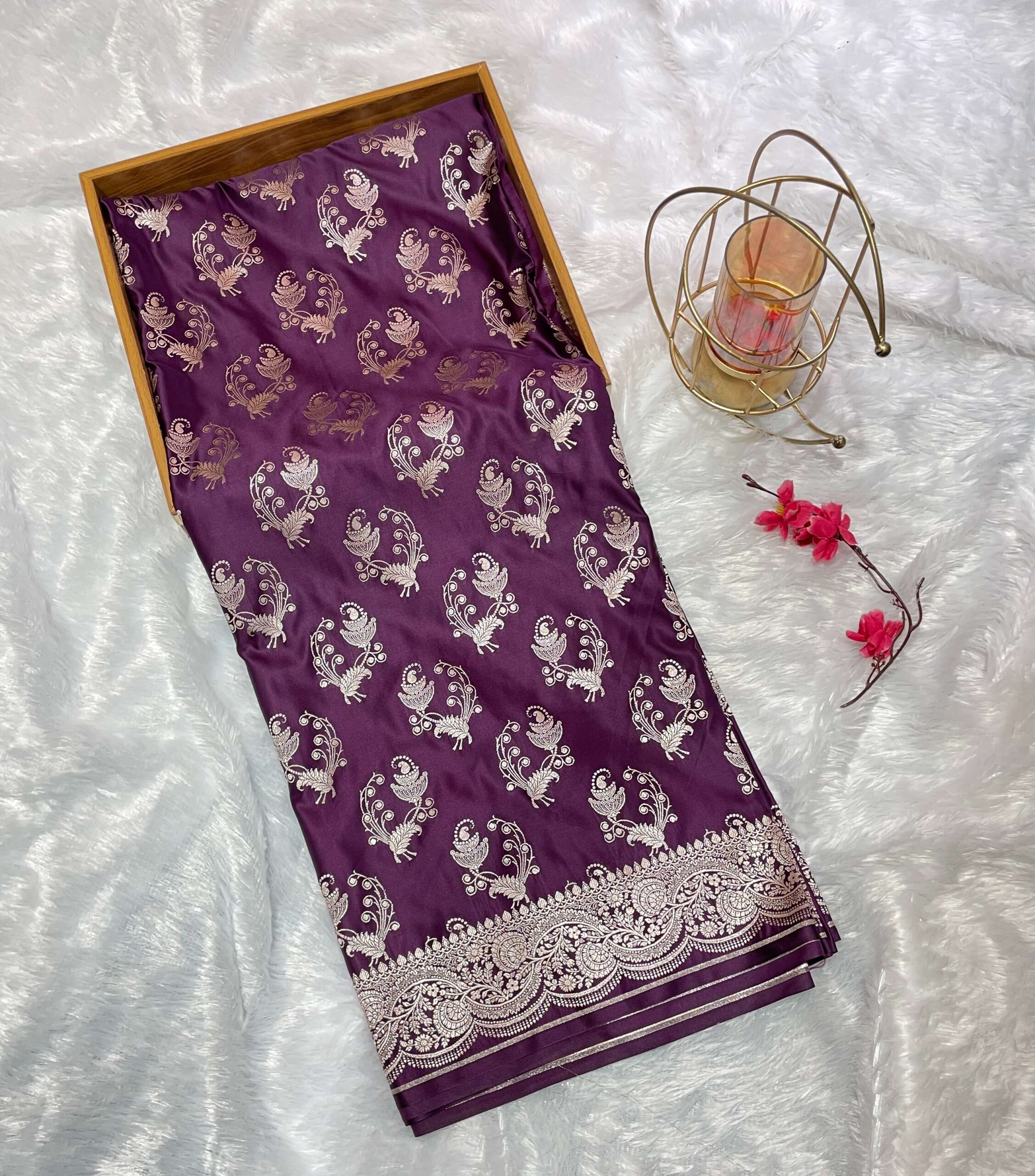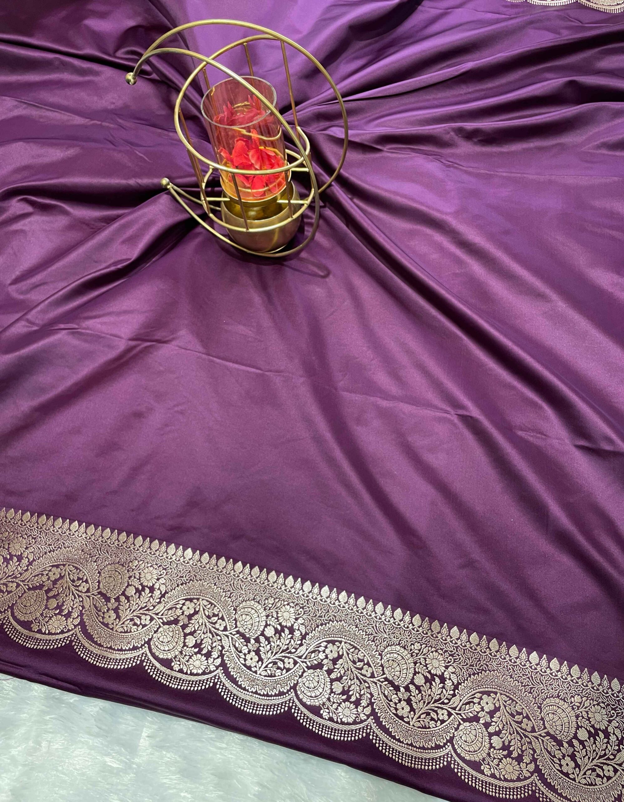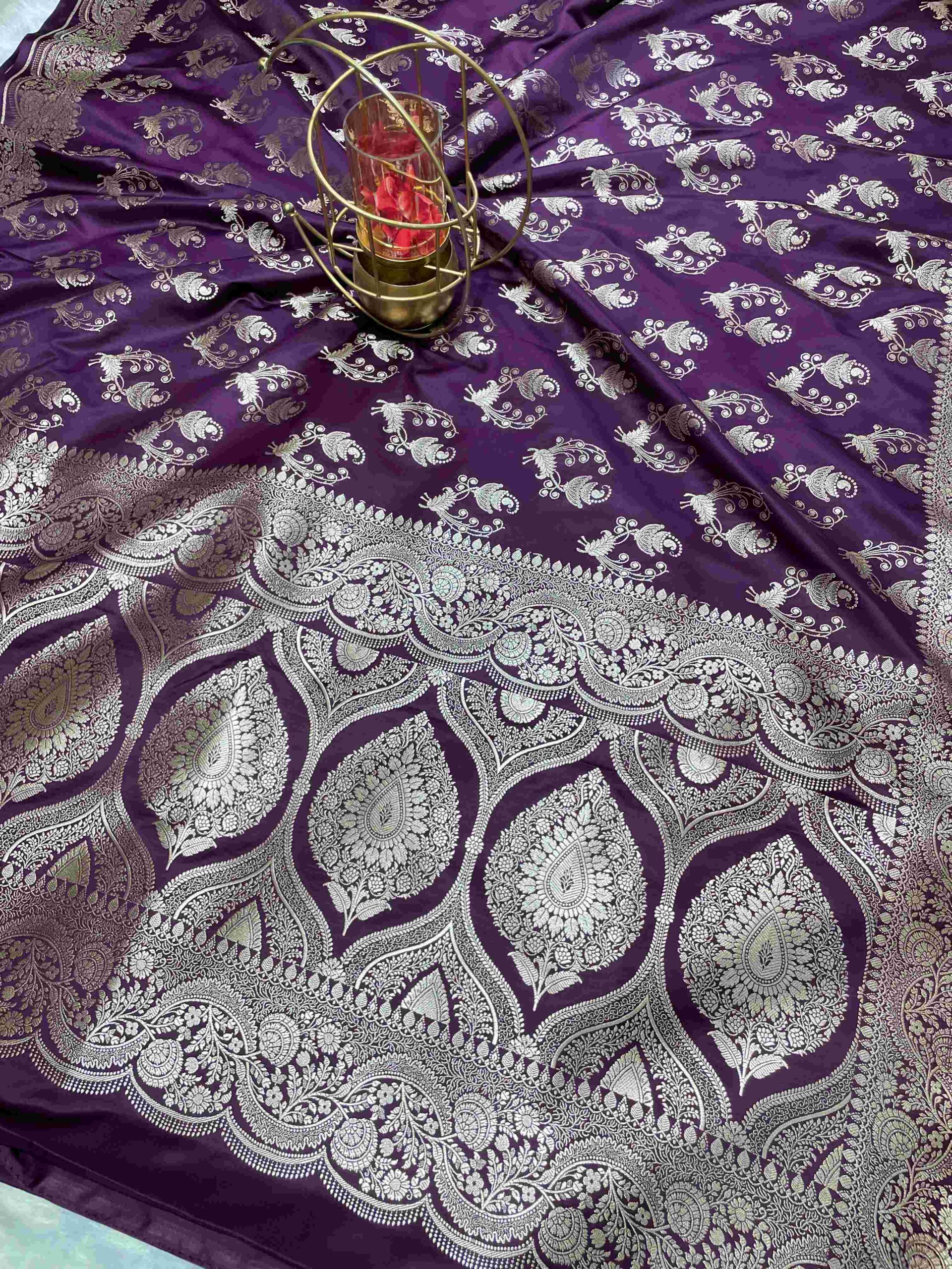Royal Purple Pure Mashru Silk Saree with Silver Zari Work