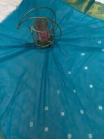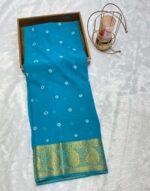 Sky Blue Pure Silk Bandhani Saree with Golden Zari Paisley Border