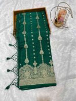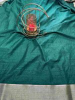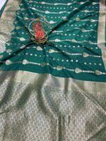 Be the first to review “Teal Green Pure Banarasi Silk Saree with Silver Zari Work”