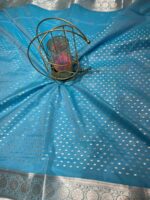 Be the first to review “Turquoise Blue Cotton Linen Silk Saree with Silver Zari Buti”