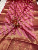 Be the first to review “Vibrant Rani Pink Pure Banarasi Silk Saree with Golden Zari Border” Cancel reply