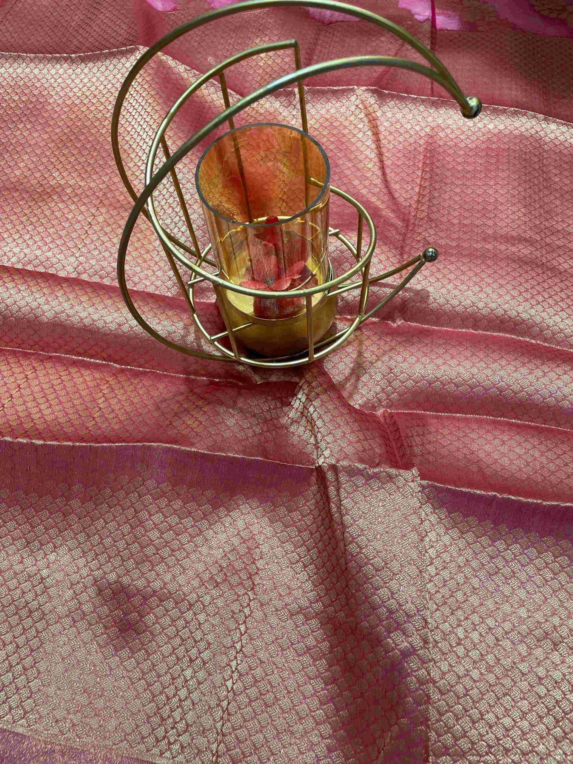 | COLOR | Lustrous rani pink body with rich golden zari border |